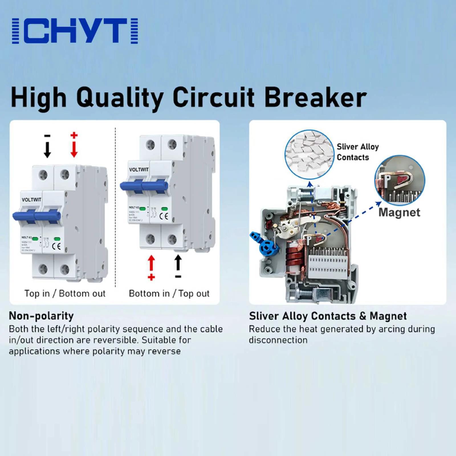 เบรกเกอร์ขนาดเล็ก ICHYTI dc ของซัพพลายเออร์ในจีนนี้เหมาะสำหรับวงจร DC ที่ได้รับการจัดอันดับต่ำกว่า 1000V ซึ่งส่วนใหญ่ใช้สำหรับการป้องกันการโอเวอร์โหลดและการลัดวงจร และสามารถใช้สำหรับการสลับการทำงานเป็นครั้งคราว กระแสไฟที่กำหนดจะต้องไม่เกิน 63A