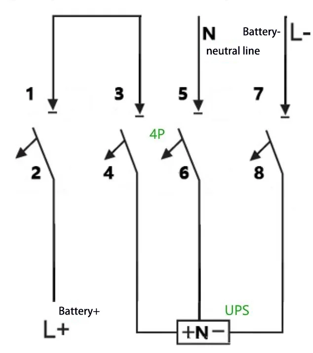 ในการกำหนดค่าระบบจ่ายไฟของ UPS เบรกเกอร์วงจรไฟฟ้ากระแสตรงทำหน้าที่สองฟังก์ชันคือการแยกและการป้องกันกระแสเกินสำหรับวงจรแบตเตอรี่ แหล่งจ่ายไฟของ UPS ประเภทต่างๆ จะสอดคล้องกับแรงดันไฟฟ้าและกระแสไฟที่กำหนดโดยแบตเตอรี่ ดังนั้นจึงต้องมีการปรับเบรกเกอร์วงจรไฟฟ้ากระแสตรงที่มีจำนวนขั้วต่างกัน บทความนี้จะอธิบายรายละเอียดวิธีการเดินสายต่างๆ ของเซอร์กิตเบรกเกอร์ DC 1P/2P/3P/4P ที่ใช้ในระบบ UPS